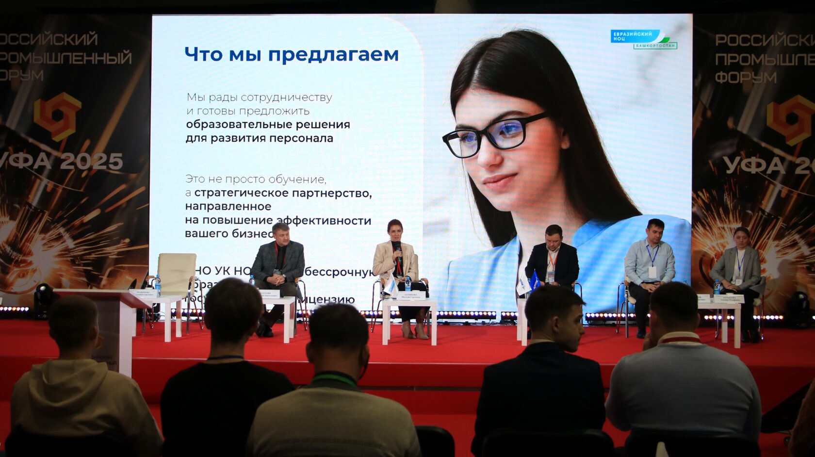 С 12 по 14 ноября в Уфе проходит Российский промышленный форум. Первый день стал для Евразийского НОЦ насыщенным и продуктивным. Вместе с Центром профессиональной подготовки кадров (ЦППК) провели спич-сессию: «Безопасность как драйвер эффективности и роста промышленности». В ходе сессии участники рассмотрели вопросы формирования синергетического эффекта от взаимодействия науки, бизнеса и государства в деле развития культуры безопасности. Обсуждение охватило комплексный подход – от организации подготовки студентов и управленческих кадров до формирования осознанного поведения и повышения уровня устойчивости на промышленных предприятиях.